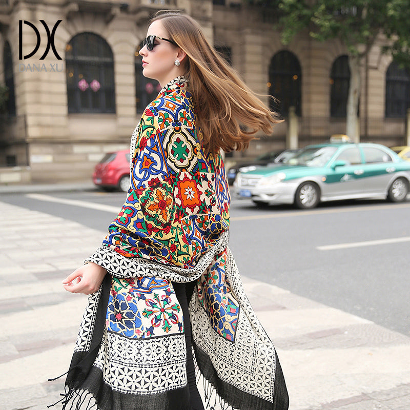 DANA XU 100% Merino Wool Extra Large Pashmina Blanket Travel Scarf Cashmere Wrap for Women Fall Winter Oversize Shawl Floral