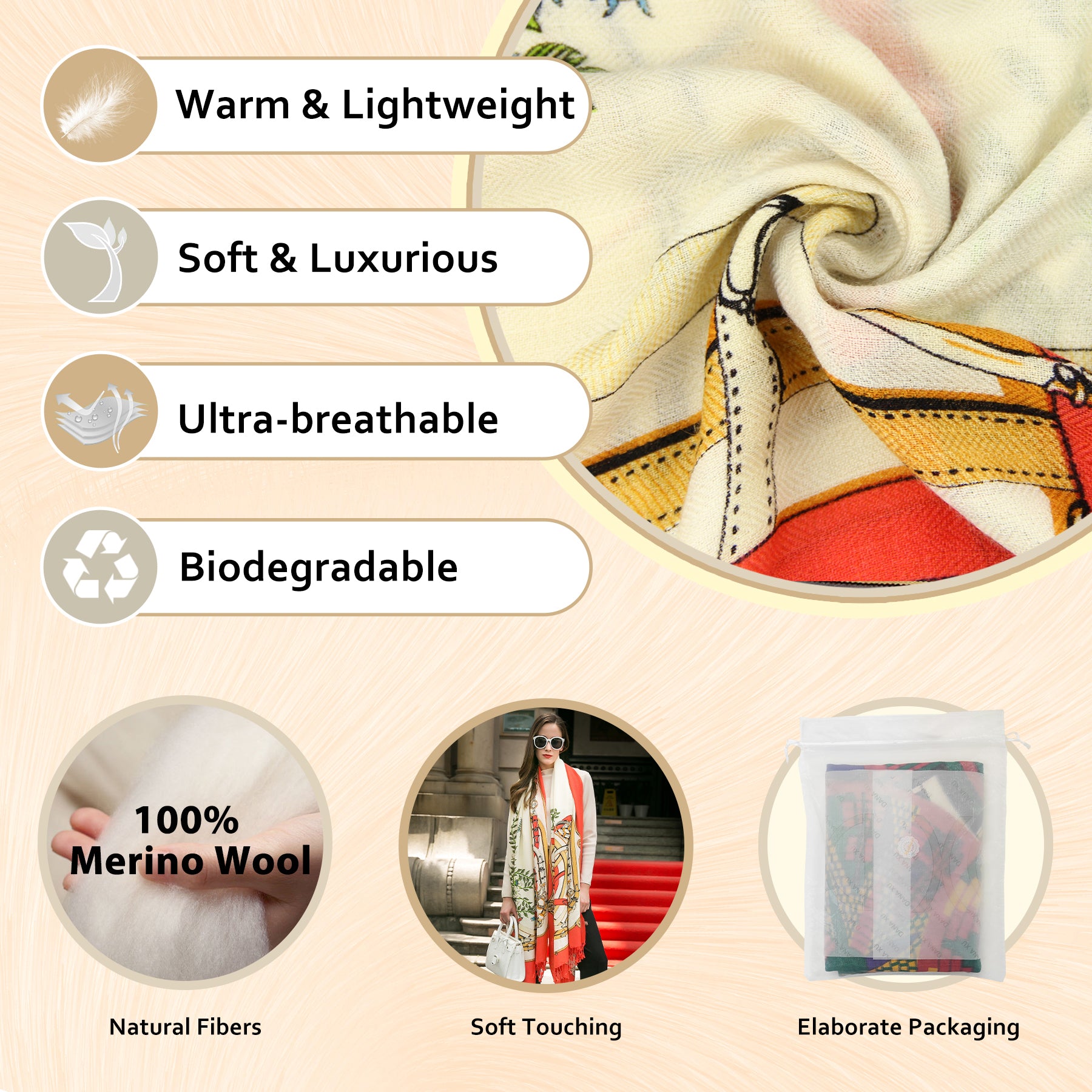 - Luxurious Pure Wool Shawl for Women: 100% Merino wool for pashmina wraps, delicate soft& smooth touching. 96X43 inches with handmade tassel, two times larger than regular shawl, cozy as blanket, lightweight less than 11oz. Perfect for travel, on vacation, party or as an amazing gift.