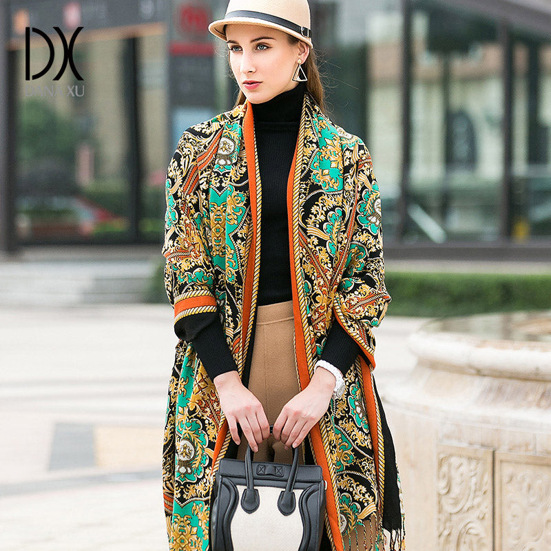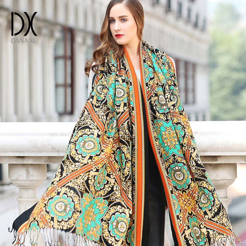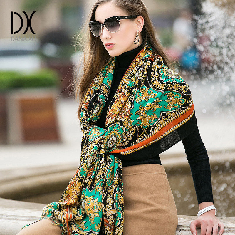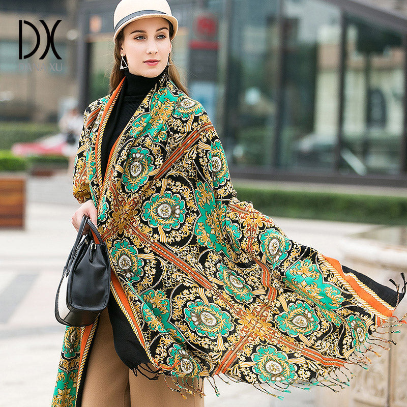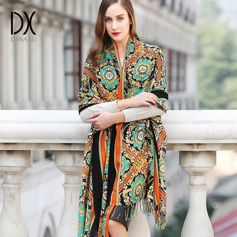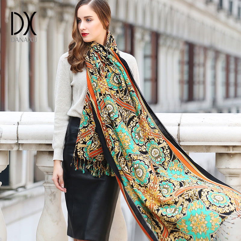DANA XU 100% Merino Wool Extra Large Pashmina Blanket Travel Scarf Cashmere Wrap for Women Fall Winter Oversize Shawl Floral