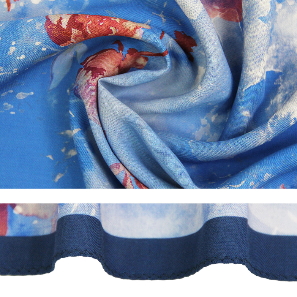 Such beautiful, saturated, rich colors and clear, vibrant, pattern designs. Unbelievably light weight yet folds flat to a tiny little square. Ultra buttery soft! The size is perfect for so many alternate ways to wear this! Full coverage as a swim cover up halter dress and a maxi skirt on a 5’11” size 10-12 (USA) woman! It’s so elegant that I will wear it as a scarf for formal evening events too! Perfect for our dream anniversary trip to Italy next year!! This is really a great buy - higher quality than the bargain price suggests.