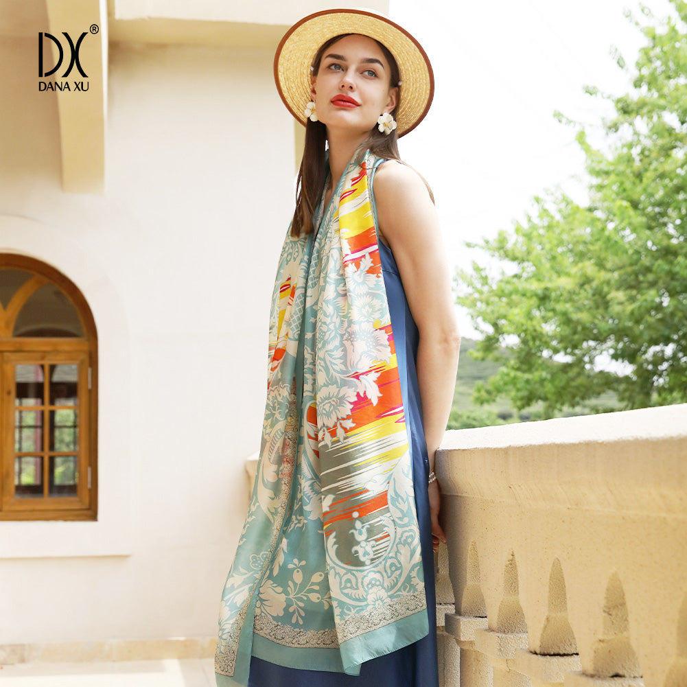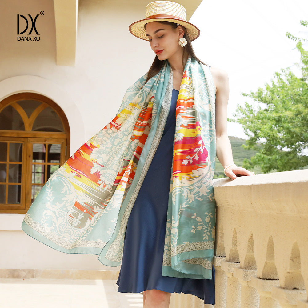 DANA XU Women's 100% Mulberry Satin Silk Pashmina Shawl Wraps Extra Large Floral Scarf for Evening Dresses, Soft Oversized