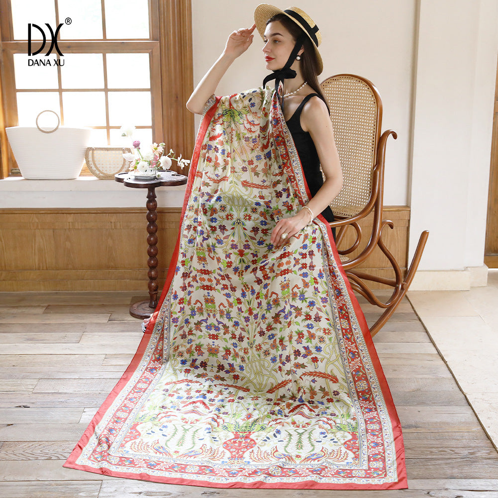 DANA XU Women's 100% Mulberry Satin Silk Pashmina Shawl Wraps Extra Large Floral Scarf for Evening Dresses, Soft Oversized