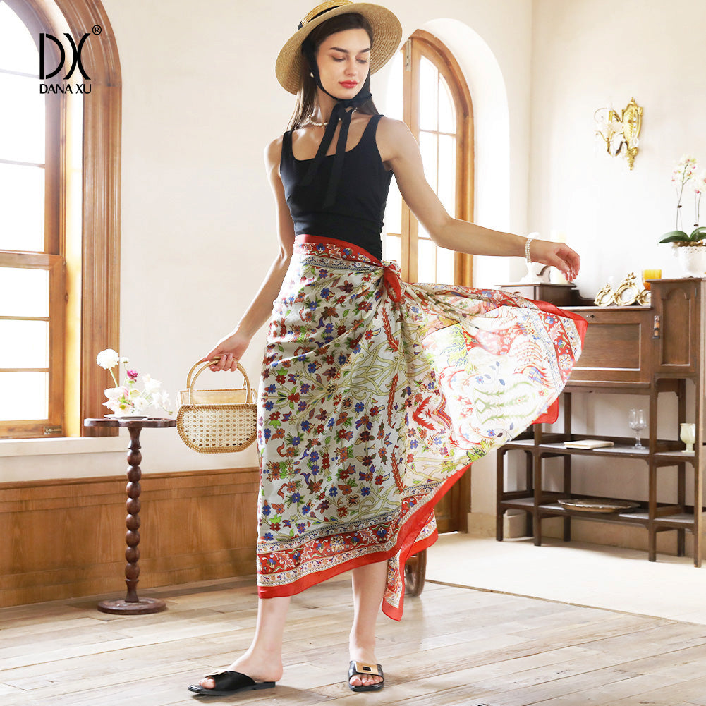 Such beautiful, saturated, rich colors and clear, vibrant, pattern designs. Unbelievably light weight yet folds flat to a tiny little square. Ultra buttery soft! The size is perfect for so many alternate ways to wear this! Full coverage as a swim cover up halter dress and a maxi skirt on a 5’11” size 10-12 (USA) woman! It’s so elegant that I will wear it as a scarf for formal evening events too! Perfect for our dream anniversary trip to Italy next year!! This is really a great buy - higher quality than the bargain price suggests.