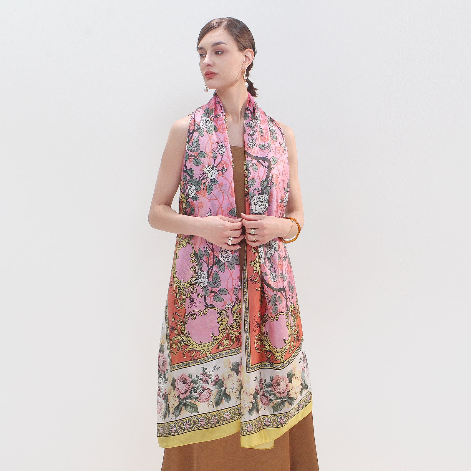 DANA XU Women's 100% Mulberry Satin Silk Pashmina Shawl Wraps Extra Large Floral Scarf for Evening Dresses, Soft Oversized